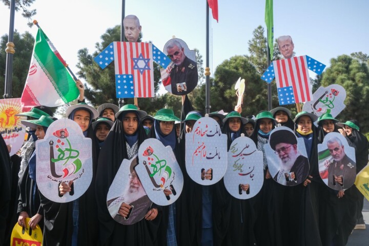 دانشآموزان این شهرستان نیز با در دست داشتن تصاویر شهدای مقاومت و جنگ ۱۲ روزه علیه رژیم صهیونیستی، اعلام کردند که همچون شهدای دانشآموز ۱۳ آبان ۵۷، آماده جانفشانی در راه حق و انقلاب هستند.